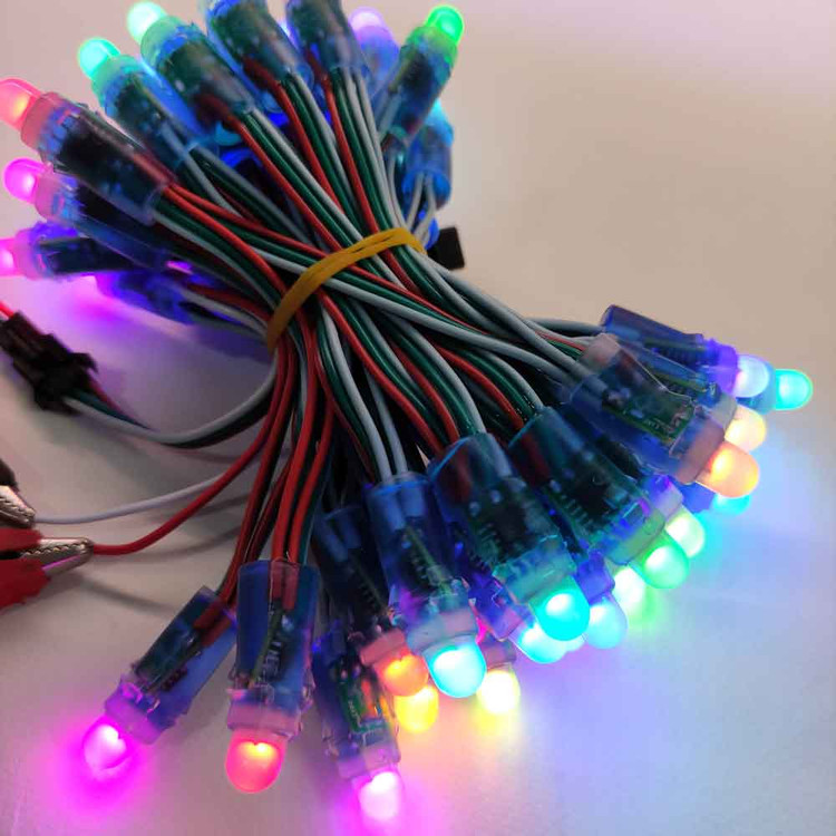 پیکسل انگشتی فولکار با بالاترین درجه کیفیت و بهترین قیمت! این محصول با قابلیت نصب و استفاده در محیط داخلی خانه و محل کار ، به شما زیبایی بی دردسر را هدیه میدهد . ال ای دی انگشتی پیکسلی از لحاظ فیزیکی شامل یک ال ای دی 8 میلیمتری بهمراه یک کاور کلاهکی 12 میلیمتری (قطر سوراخ مته) است که در داخل کاور یک عدد آی سی دیجیتالی برنامه پذیر که با رزین آب بندی شده در آن قرار گرفته است.این پیکسل فول کالر در دسته های 50 تایی بفروش می رسد. هر کدام از ال ای دی ها سه رنگ نور اصلی (آبی، قرمز، سبز) را تولید میکند و یک ای سی فول کالر دارد که با وصل کردن آن به فلاشر تمام رنگ ها را به دست آورد.از ویژگی های این ال ای دی انگشتی پیکسلی برنامه پذیر ضد آب بودن، قطر 12 میلیمتری، درجه حفاطت IP68 و کم مصرف بودن است که بسیار مقرون بصرفه بوده و برای تابلوسازی و نصب روی سطوحی از جنس ترموود، ام دی اف و … استفاده میشود